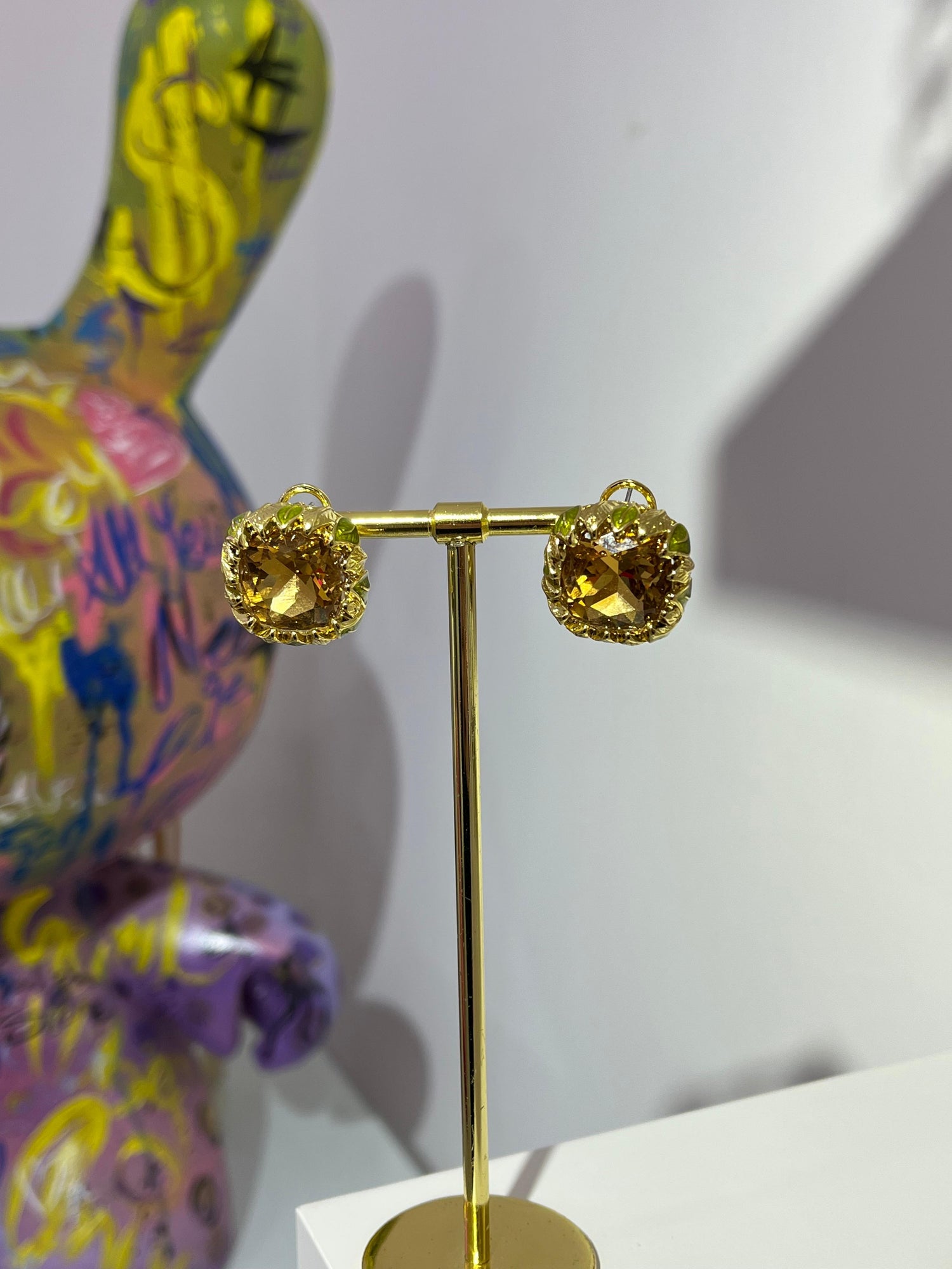 Kahverengi Swarovski Taş Küpe