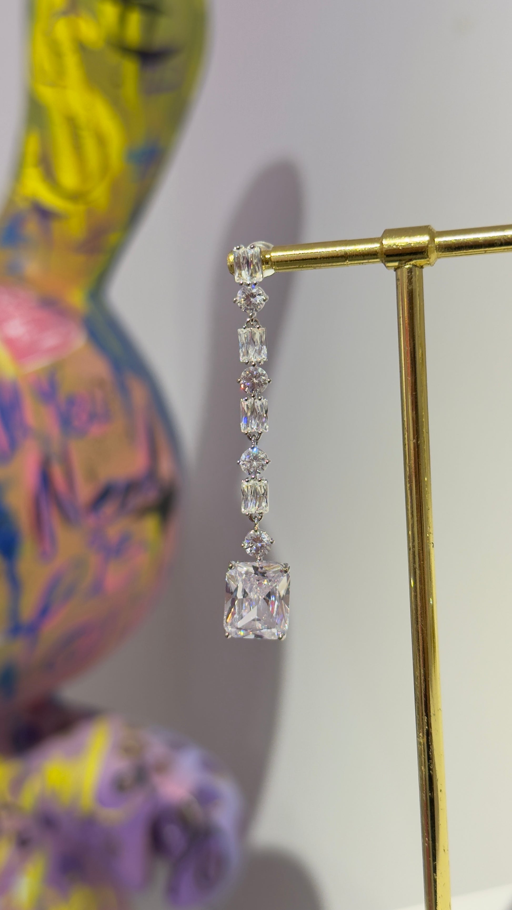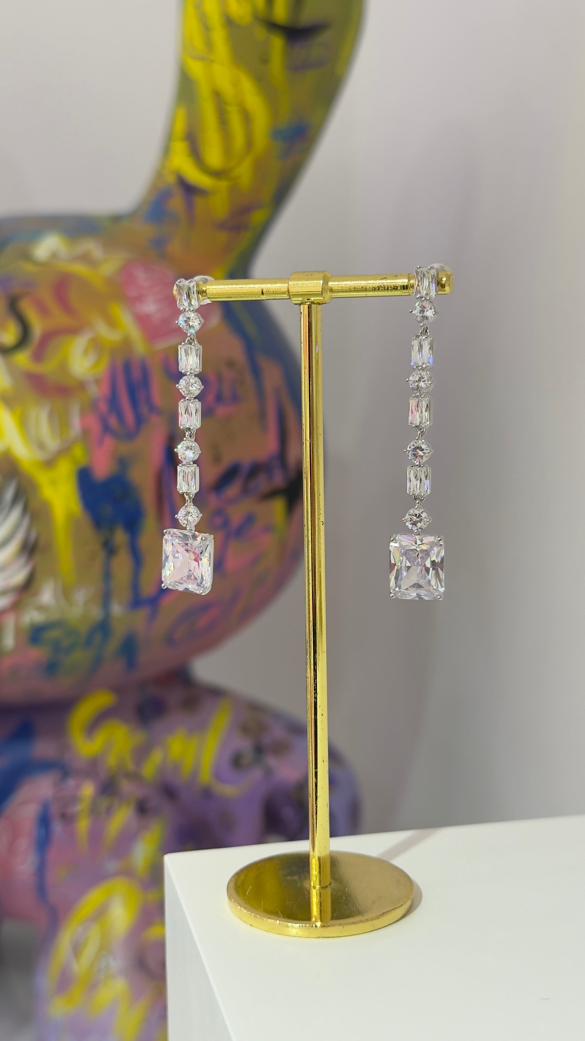 Beyaz Taşlı Sallantılı Küpe