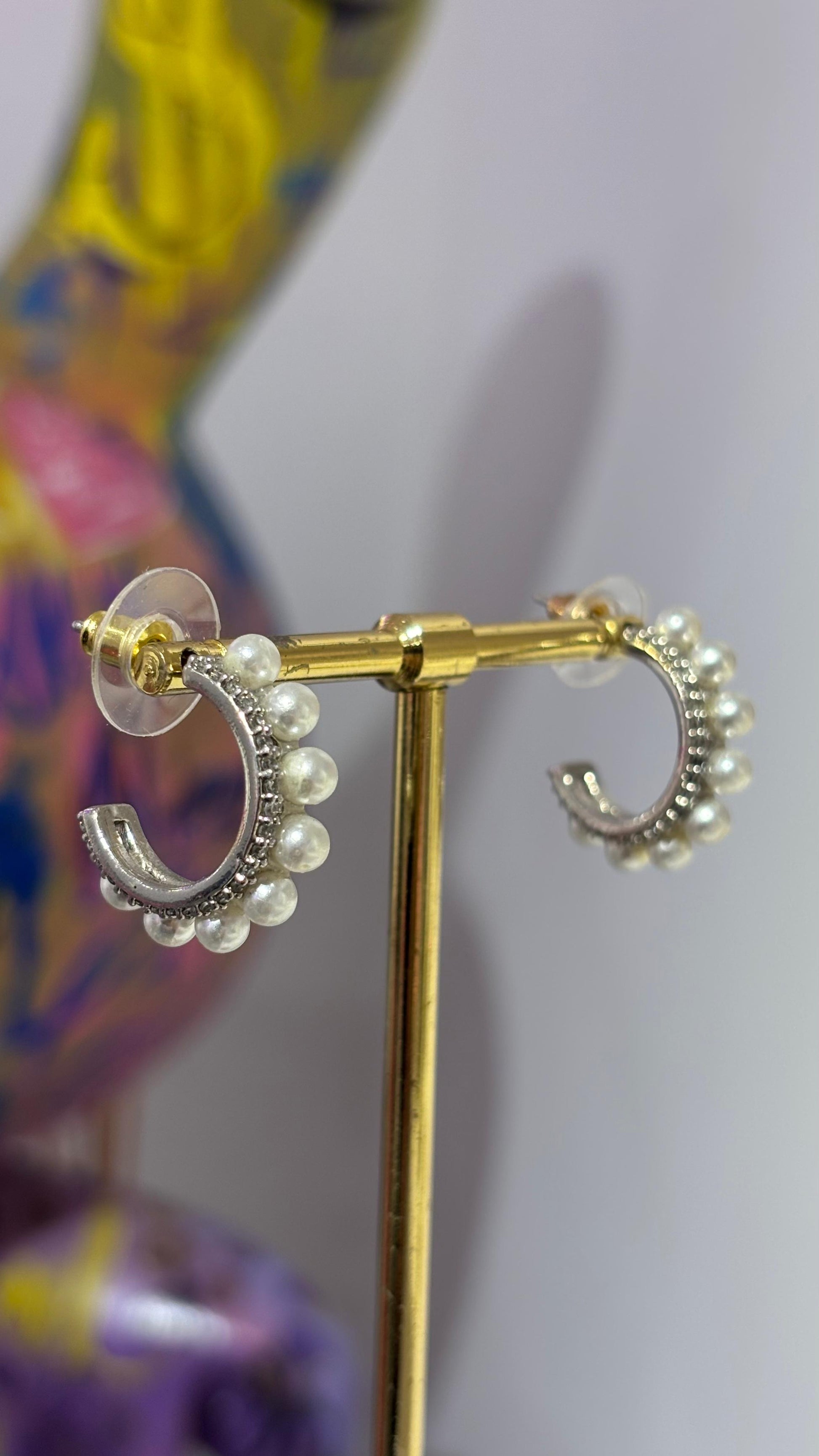 İncili Taşlı Halka Küpe