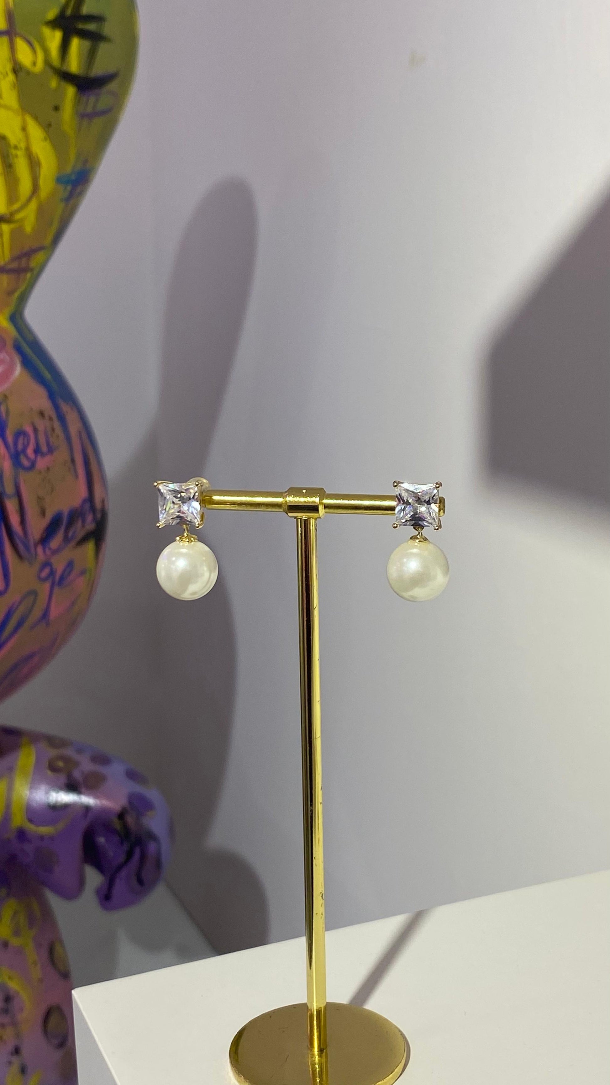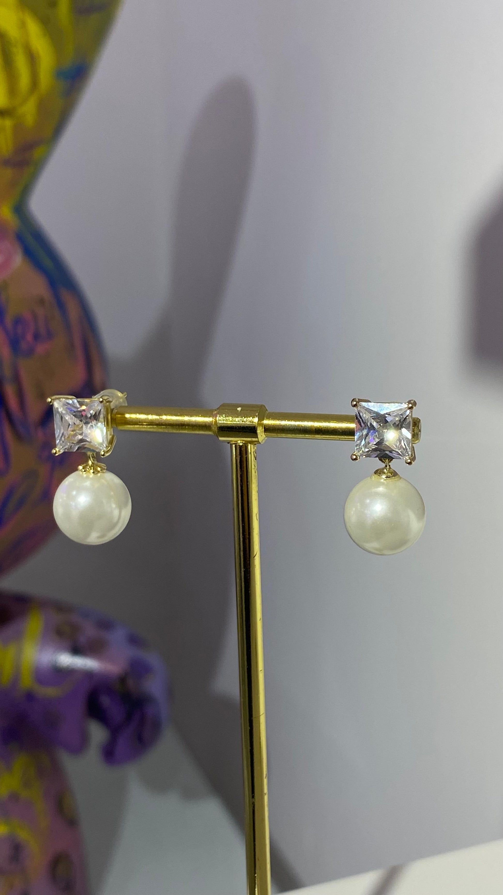 Kare Taş İnci Küpe