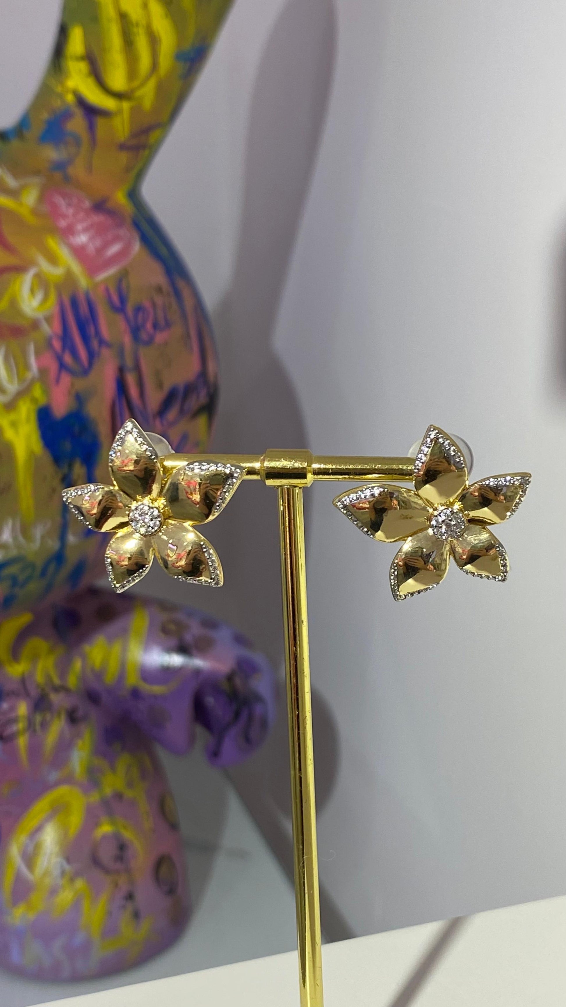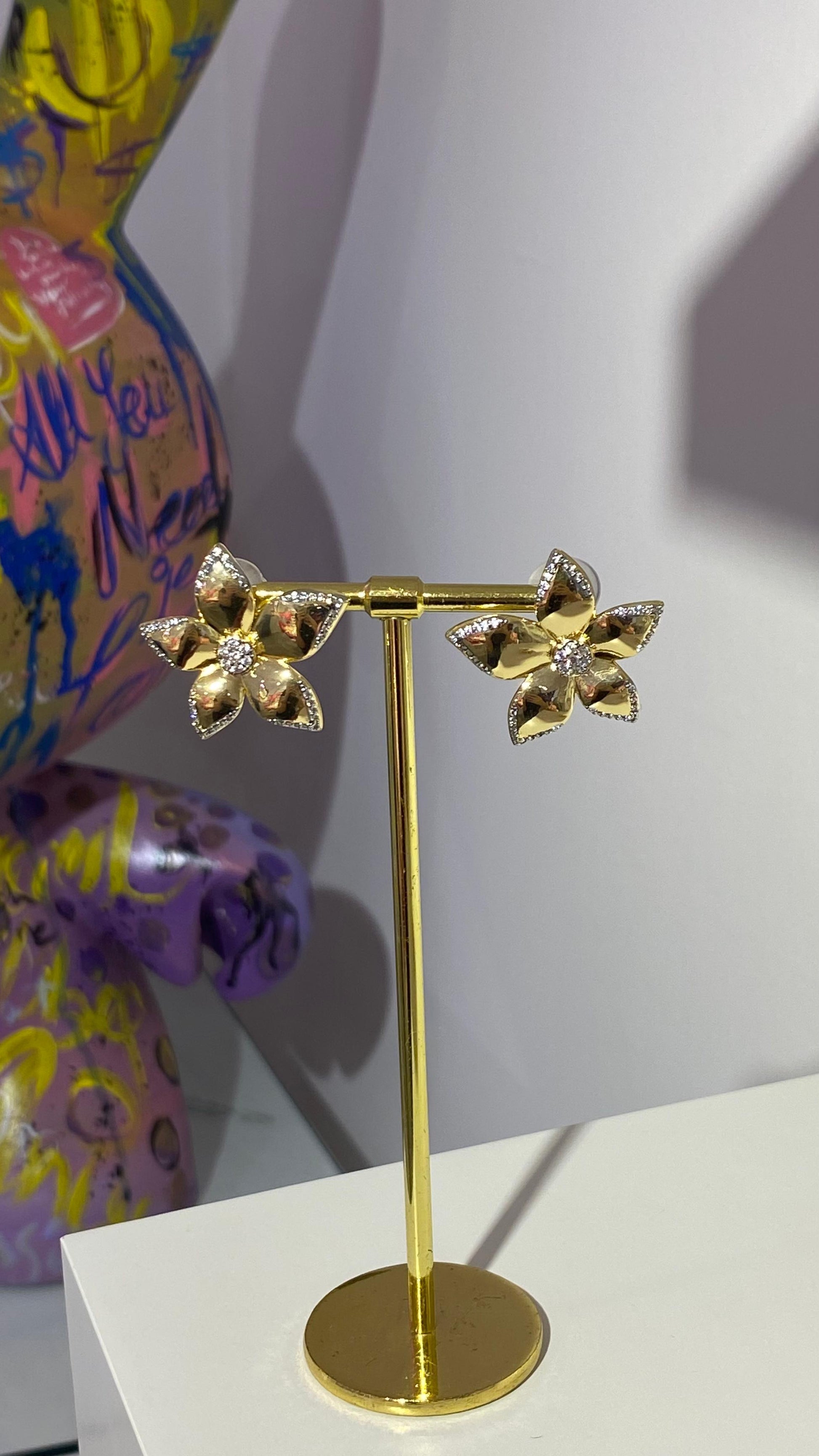 Taşlı Çiçek Küpe