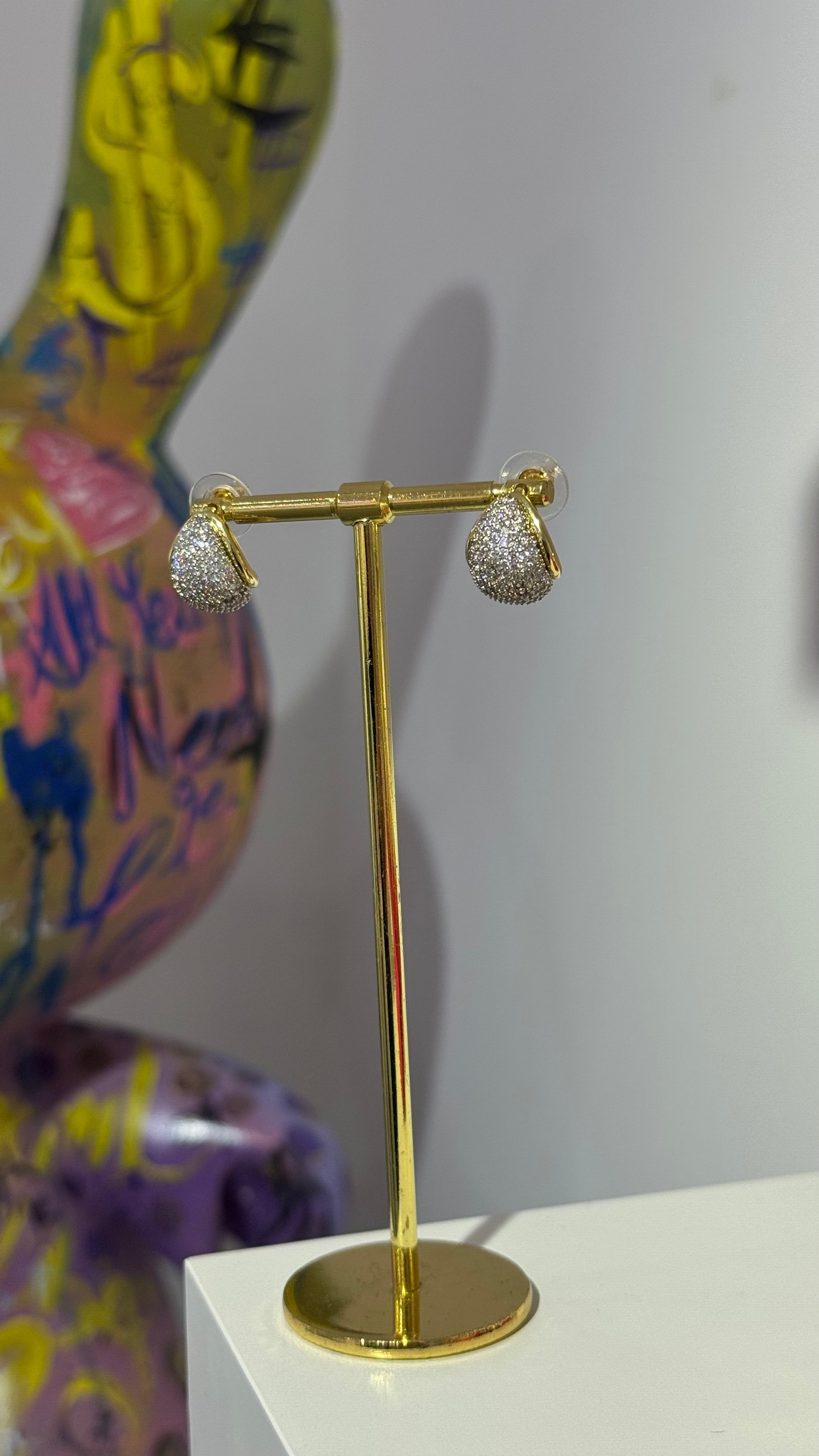 Taşlı Top Formda Küpe