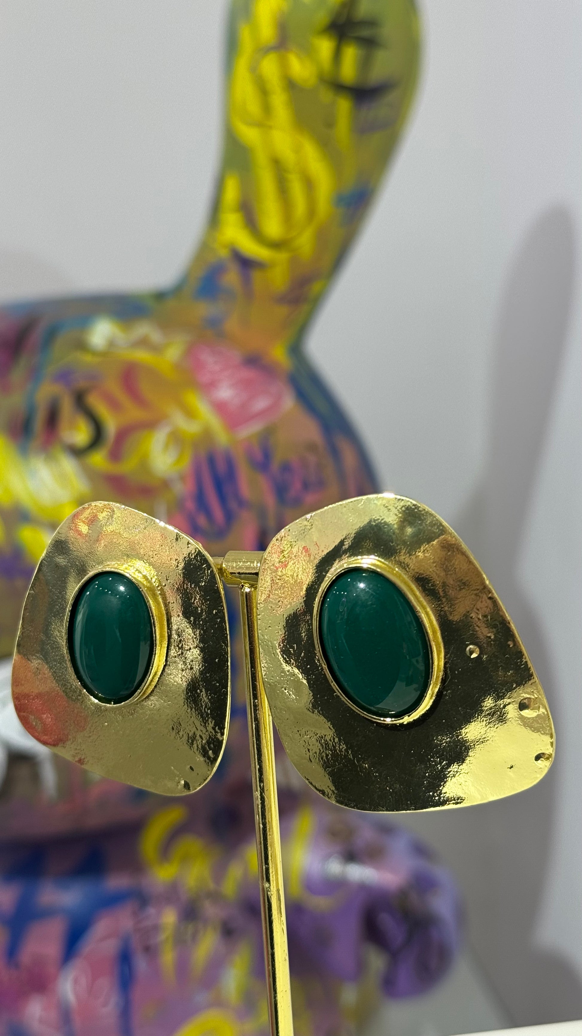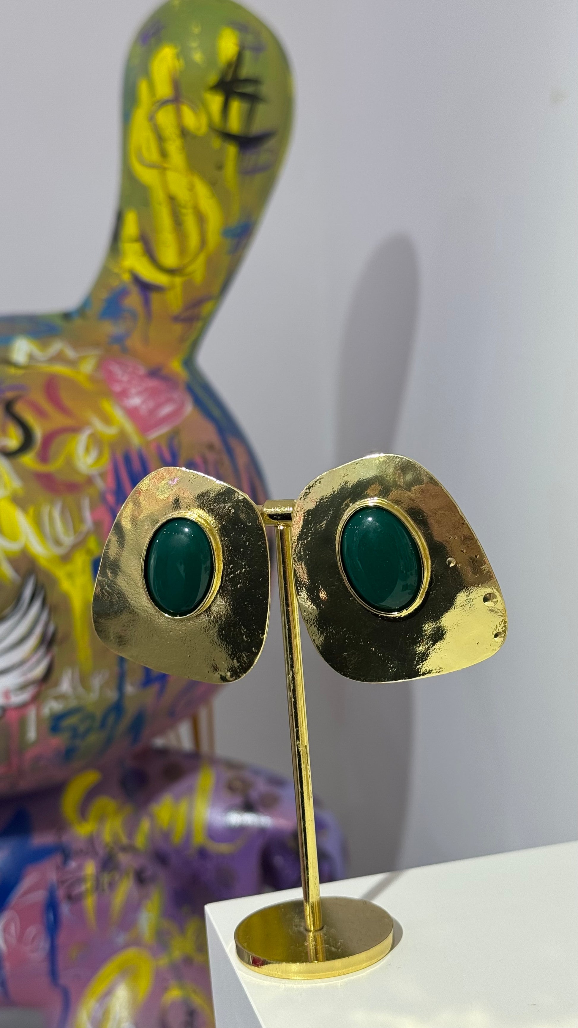 Yeşil Taşlı Vintage Küpe